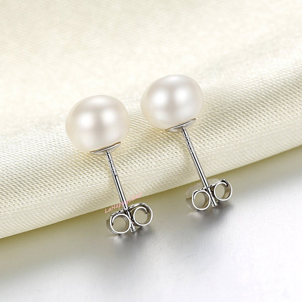 7-8mm White Freshwater Pearl Stud Earrings 925 Sterling Silver post & back bridal Gift