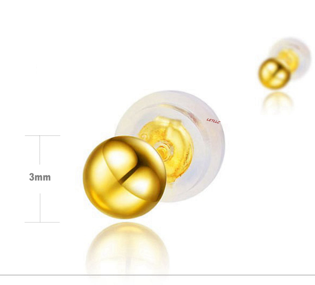 18K Yellow Gold Ball stud Earrings Women Men Unisex 3mm or 4mm